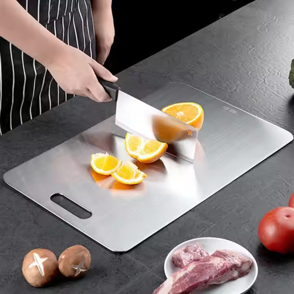 The Titanium Cutting Board is the perfect solution to meet all your cutting needs. Made from robust stainless steel titanium alloy, this board provides ample space for various culinary prep tasks. Its lightweight design makes it ideal for outdoor cooking, while the easy-to-clean surface ensures a hassle-free cleaning experience.